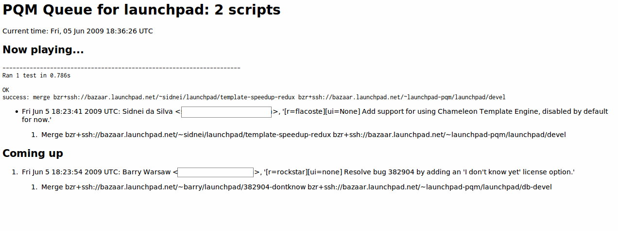I am really interested in many of the things that the Launchpad team is doing, process-wise. The PQM seems like a very nice idea for a bigger team like theirs, though it would probably be useful to our smaller team in Landscape too, and to others in general. Hopefully I will get a chance to explore it more and talk about it during the upcoming FISL 10, in Porto Alegre.